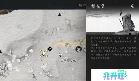1、想开启这个挑战,你需要来到河西区域的金沙川,准确位置在地图右上角,靠近山体的一处悬崖边上。
